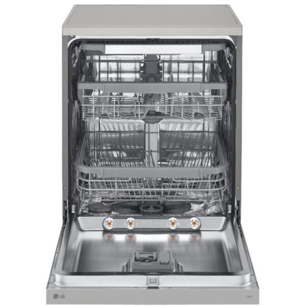 Auto 45-65°C: این برنامه هوشمند بهطور خودکار میزان کثیفی ظروف را تشخیص میدهد و دمای شستشو را بین ۴۵ تا ۶۵ درجه تنظیم میکند. Delicates: مخصوص ظروف حساس مثل لیوانهای کریستالی و ظروف چینی ظریف که در دمای ملایم شستشو داده میشوند تا از آسیب جلوگیری شود. Download Cycle: با استفاده از قابلیت اتصال به Wi-Fi و اپلیکیشن LG ThinQ میتوانید برنامههای جدید را دانلود کرده و به دستگاه اضافه کنید. انعطاف بالا برای تنظیمات شخصیسازیشده. Eco 50°C: یک چرخه کممصرف و اقتصادی برای شستشوی روزمره. با مصرف آب و انرژی کمتر، دوستدار محیطزیست و مقرونبهصرفه برای استفاده مداوم. Express 65°C: شستشوی سریع برای ظروفی که خیلی کثیف نیستند. زمان چرخه کوتاهتر بوده و دمای ۶۵ درجه باعث تمیزی رضایتبخش در زمان کمتر میشود. Intensive 70°C: برای شستشوی قابلمهها، ماهیتابهها و ظروف بسیار چرب؛ با دمای بالا و زمان بیشتر، تمام چربیها و لکههای سخت از بین میروند. Machine Clean: برنامهای برای شستشوی داخلی خود دستگاه؛ با استفاده از این برنامه میتوانید جرمگیری داخلی را انجام داده و طول عمر دستگاه را افزایش دهید. Refresh: مخصوص ظروفی که بوی ماندگی گرفتهاند یا برای تازهسازی ظروفی که مدت زیادی در دستگاه ماندهاند بدون اینکه استفاده شوند. Rinse: برنامه آبکشی بدون مواد شوینده، مناسب برای مواقعی که میخواهید ظروف را فقط آبکشی کنید یا تا شستشوی کامل آنها را نگه دارید. Turbo: چرخهای پرقدرت و سریع برای ظروف با کثیفی بالا، که در مدت حدود یک ساعت کار شستشوی کامل را انجام میدهد.